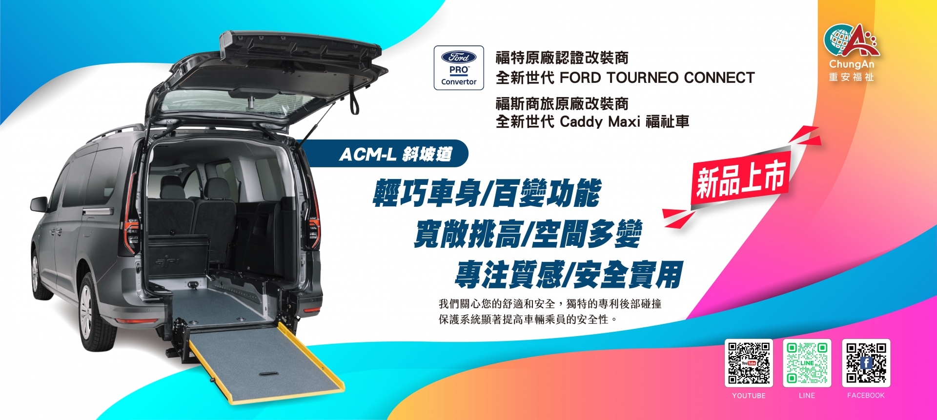 為了能夠時常開車載著年紀較大、行動不便的爸媽到處旅遊;同時又不必擔心攜帶輪椅拐杖的空間不足、還有長輩上下車的安全與便利問題…您是否也有選購全新原廠福祉車、或者是將現有自用車進行福祉車改裝的需求呢?不論是寬敞舒適的全新福祉車、還是各式客製化福祉車改裝服務,誠摯推薦委託「重安福祉科技」替您處理!本公司經營無障礙設備專賣已有八年以上的豐富經驗,自成立以來便致力引進歐洲科技與客製化技術,並根據歐盟規範、針對老年化社會各項環境需求研究出安全與便利兼具的絕佳解決方案,滿足台灣銀髮族與身心障礙者對福祉車的需求,比如符合歐盟標準的多尺寸單臂升降機、全自動雙臂升降機等設備,都能為您打造既友善又安全的無障礙環境。個人化設計服務提供、價位親民又划算,專業福祉車改裝首選「重安福祉科技」!